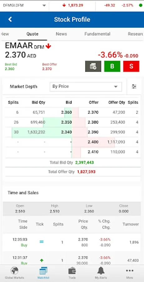 • Market Overview offers a summary of the subscribed market sessions: Turnover, Volume, Trade details of the market, Top Active by Volume, Latest News & Announcements, Sector Summary & many more.