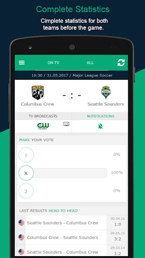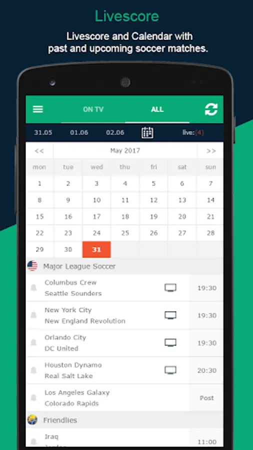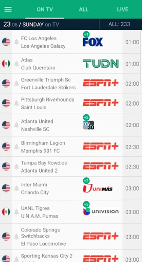 You will get the most accurate TV listing of soccer games as well as notifications for kick offs and live events as goals.