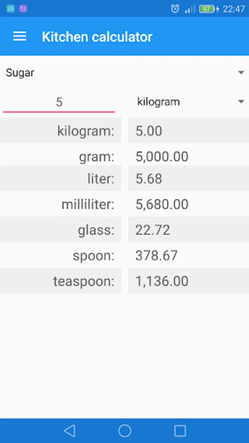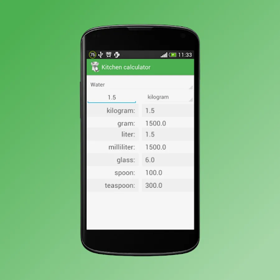 Kitchen calculator converts unit volume so that you can easily swap for example liters to cups etc