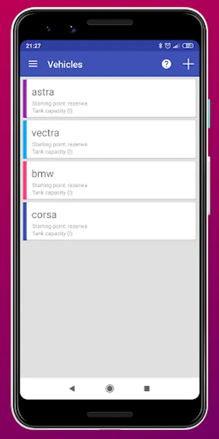 Do you miss an application that calculates fuel consumption "of reserve" ??? Here odpowiedź- as that I NEVER happen to me full tank of gas I wrote an application that consists of combustion where the starting point is a provision - as refueling lights up the "magic lamp", you enter the data, reset the counter and you have given burning fuel at a glance :)