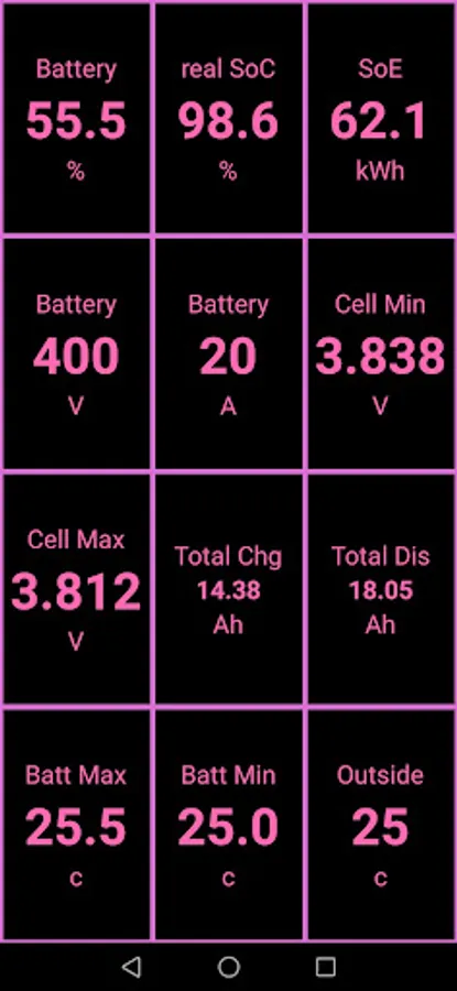 Obtain Battery's State Of Health, State of Charge, Voltage and Current in real-time.