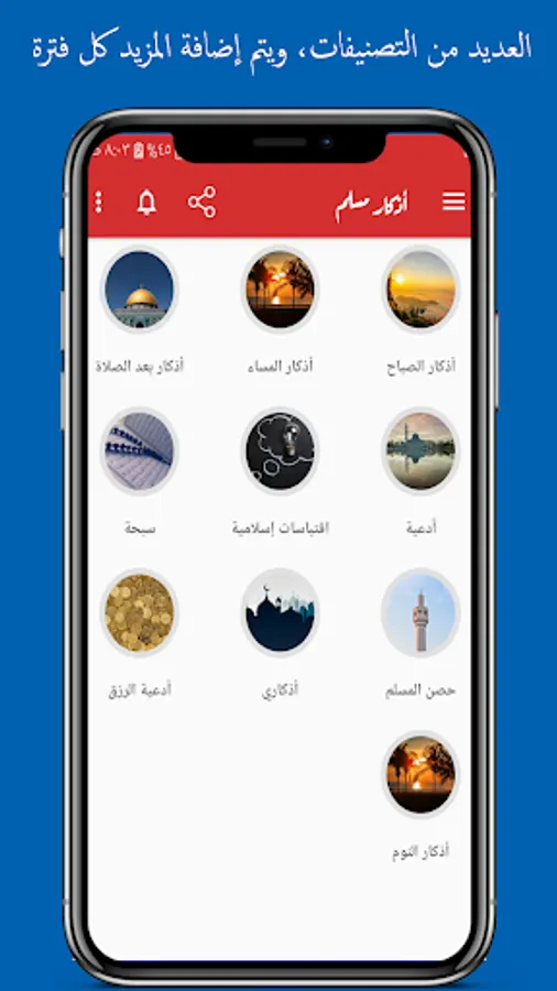And the application of complete morning and evening remembrances without the net contains more than one classification, including morning remembrances, evening remembrances, after-prayer remembrances, remembrances for the fortress of the Muslim, supplications from the Book and the Sunnah in addition to supplications for sustenance.