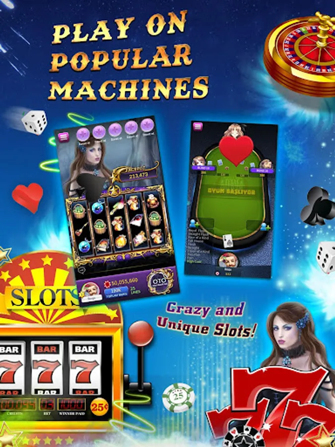 - Colorful graphics slot machines and board games
