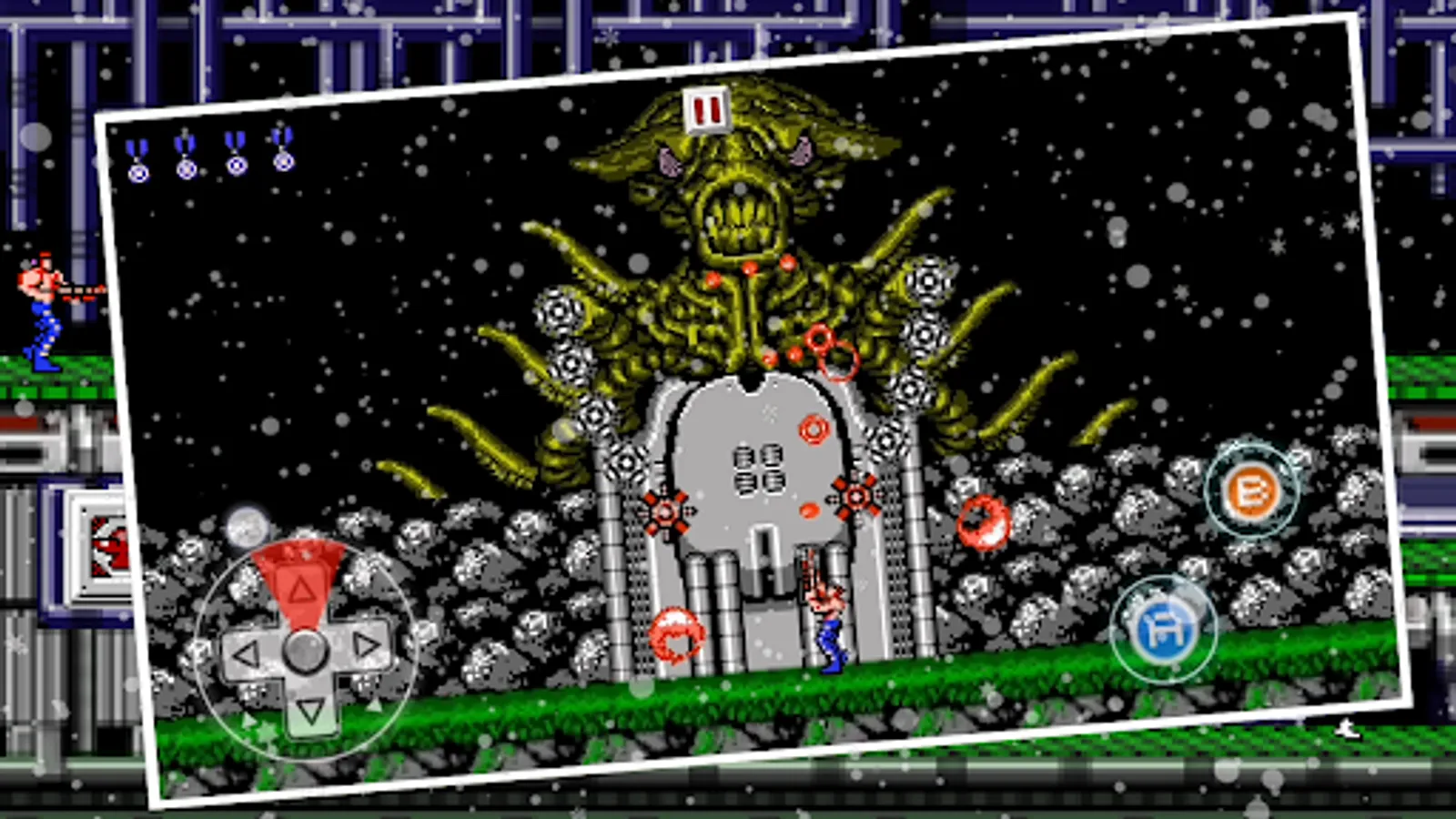 With 2 super warriors Rambo and Bill, you are equipped with the most advanced weapons: Flamethrowers, S Bullets, Cluster Bullets, Rapid Fire Bullets... fighting through mazes, underground security system land and jungle surrounded by giant waterfall and alien cannons. And if you survive, the earth will survive!