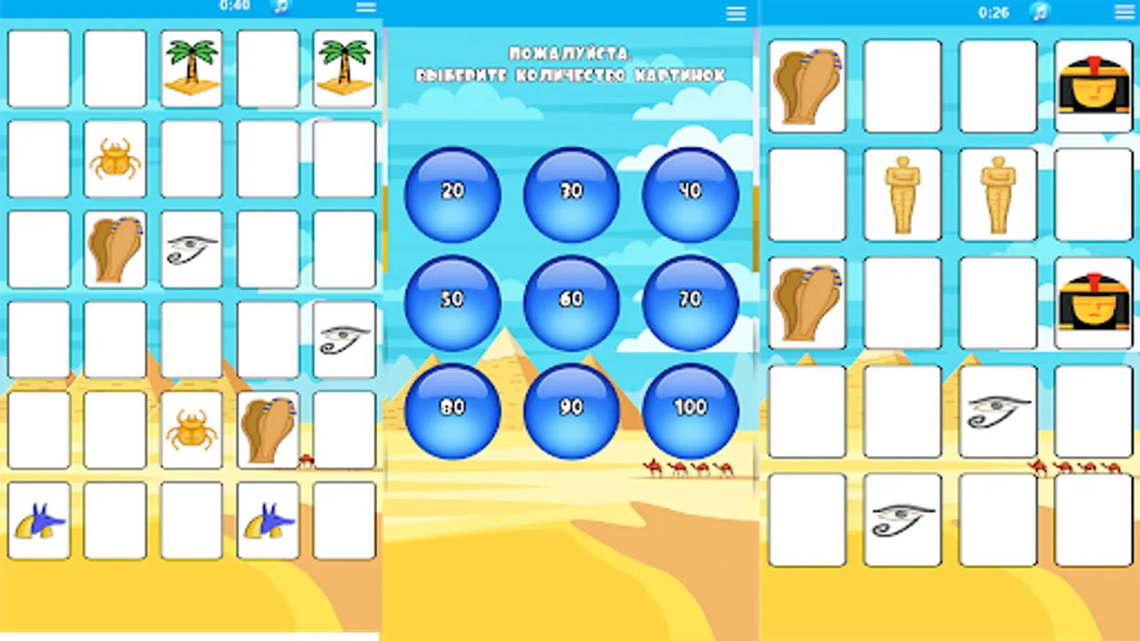 Pharaoh secrets is a game that uses different images to develop memory. Suitable for all ages.