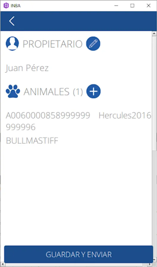 The INBA application was developed for the National Institute of Animal Welfare and allows to register companion animals, using a unique and unrepeatable chip number applied by a Veterinarian, and associate said animal with a specific owner. The INBA application can only be used by users previously authorized for this purpose.