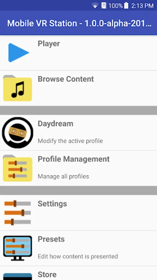 Also, this app is a complete rewrite from our existing popular app on a different platform. It has been carefully re-implemented for Android and now includes Daydream support. Not every feature will be available upon launch, but with your feedback we will grow the app.