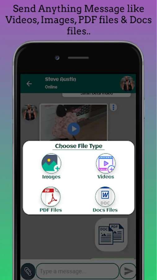 • MULTIMEDIA: Send and receive Videos, Photos, Pdf files and Docs files.