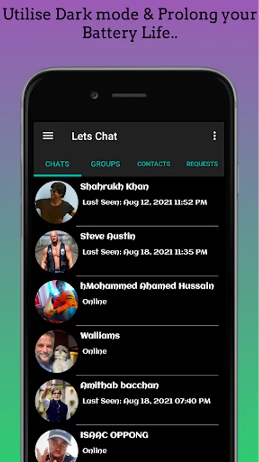• OFFLINE MESSAGES: Even if you miss your notifications or turn off your phone, Lets Chat will save your recent messages until the next time you use the app.