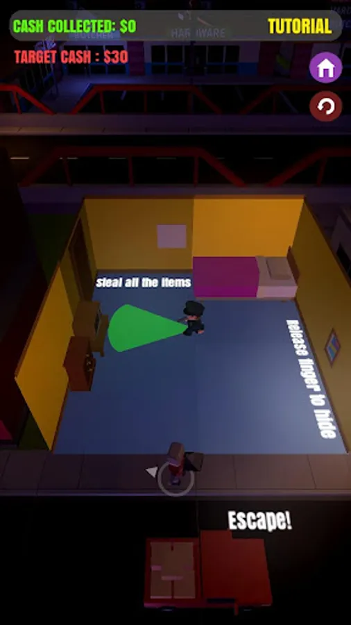 in this smart hero looter ,you have to grab the precious loots under heavy guard, and then escape using your stealth skills, after successful robbery and escaping under heavy guards petrol ,become the king of thieves, .Use your surroundings and shadows to stay hidden from flashlights.