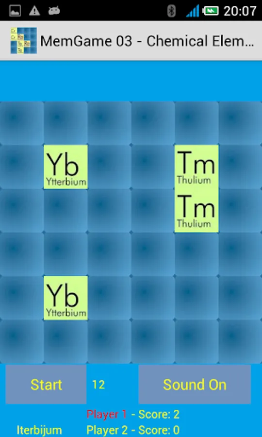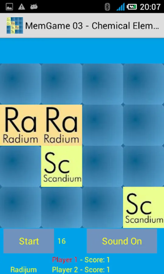 The goal of the game is to match as many pictures as possible. The game is played by two players in turns. If a player matches two images, he continues to match other images. If one player misses, the other player continues to match the pair of images. After connecting through the Bluetooth, both players have to press the game button, and after that, only the first player presses the Start button to start the game. Two players also can play the game on just one phone / tablet.