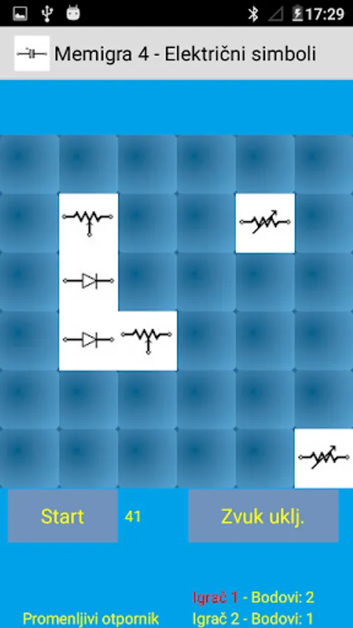 Aim is to pair as many of the same image. The game is played by two players take turns. If the player pairs two of the same pictures he continues with a selection of images. If one player misses, the other player continues Negotiated total. After connecting via Bluetooth, both players should press play, and after only the first player pressing the Start button to start the party. Two players can play the game and only one phone / tablet.