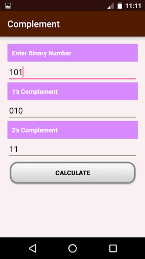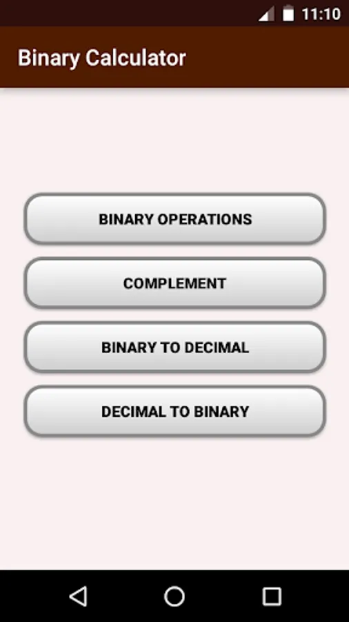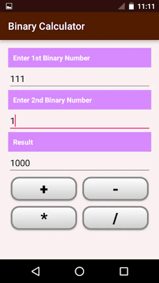 Using this app you can perform addition, subtraction, multiplication and division of binary numbers.