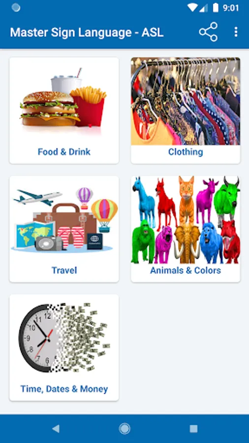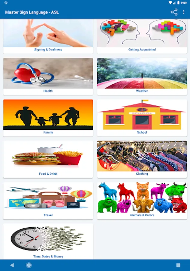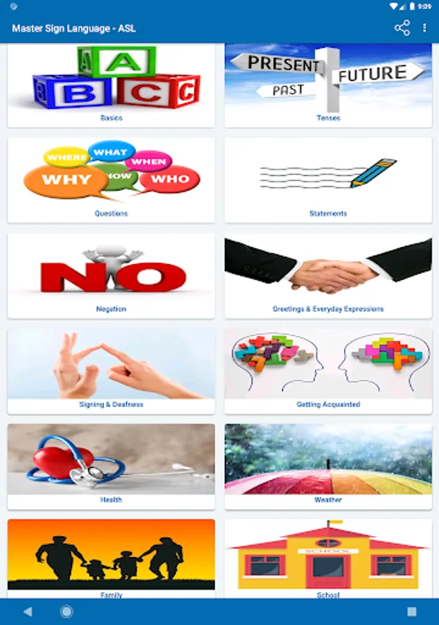 You can share the learning experience with family and friends by having them watch while you form the signs and see if you are signing it the way the images appear in the App.