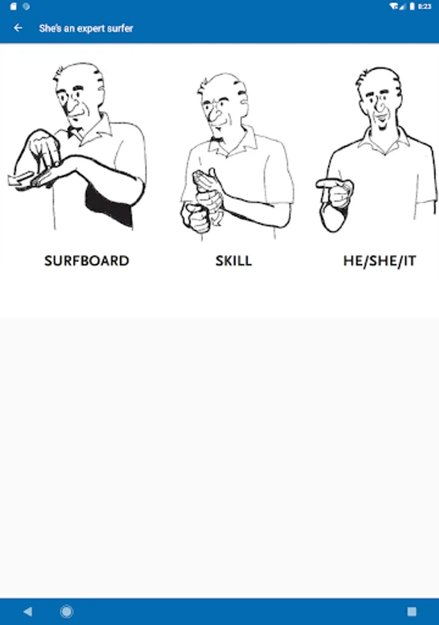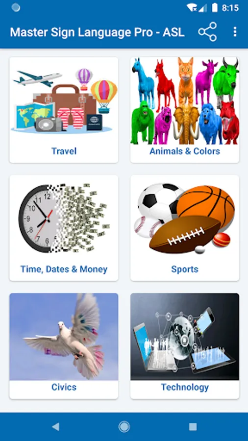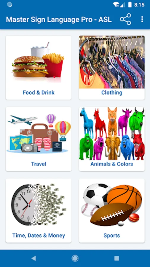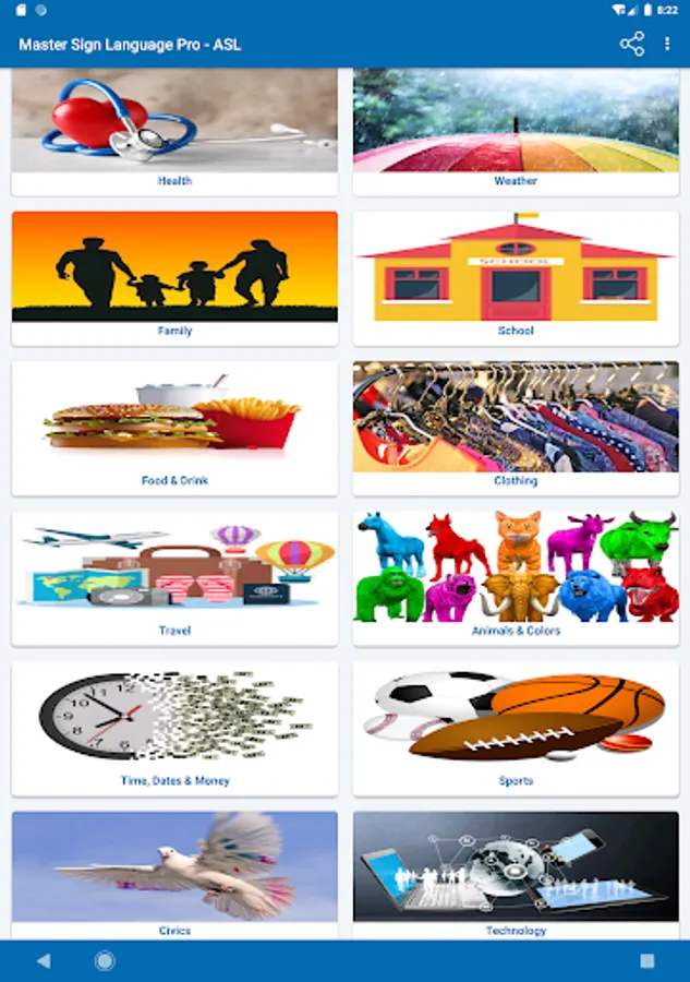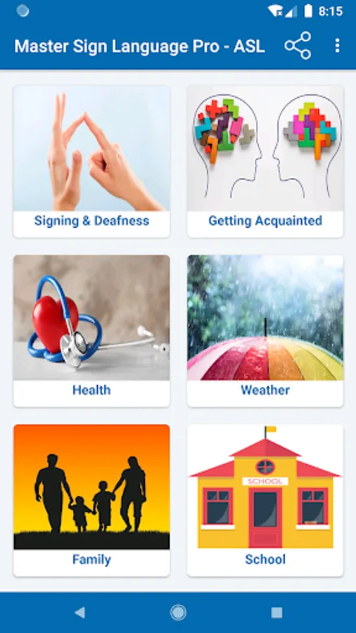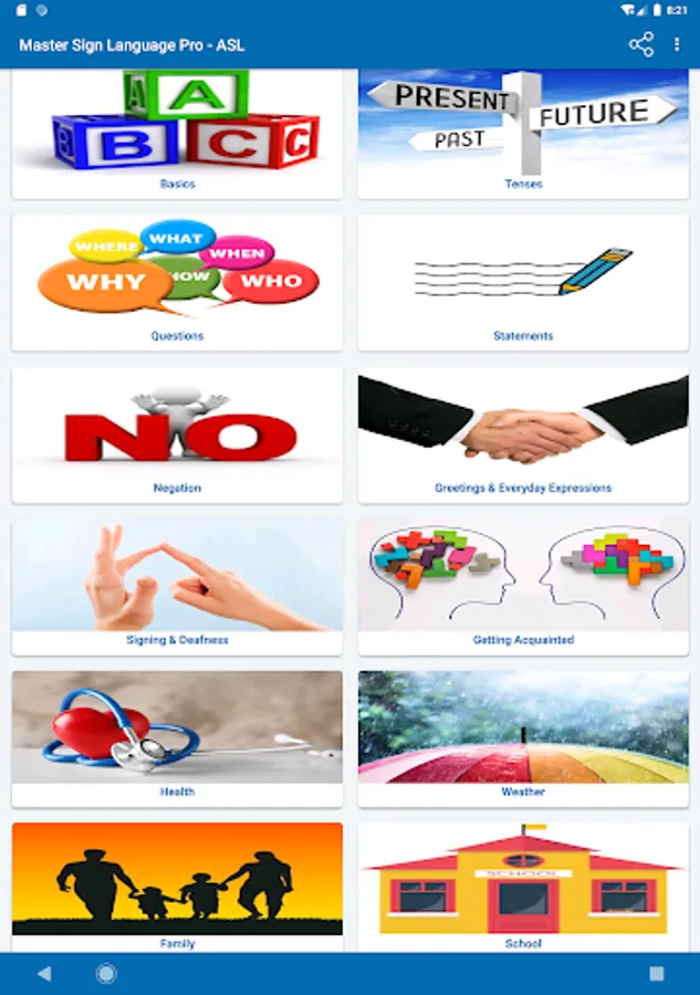 You can share the learning experience with family and friends by having them watch while you form the signs and see if you are signing it the way the images appear in the App.