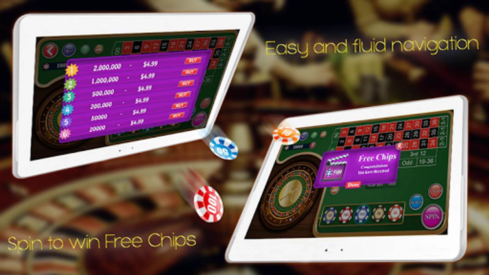 Roulette is one of the best casino table games. In our game, you can make your own roulette strategy and choose your roulette table from the available modes, get free chips, customize your bets, earn big jackpot Vegas virtual cash, and enjoy the roulette simulator game from your Android device.