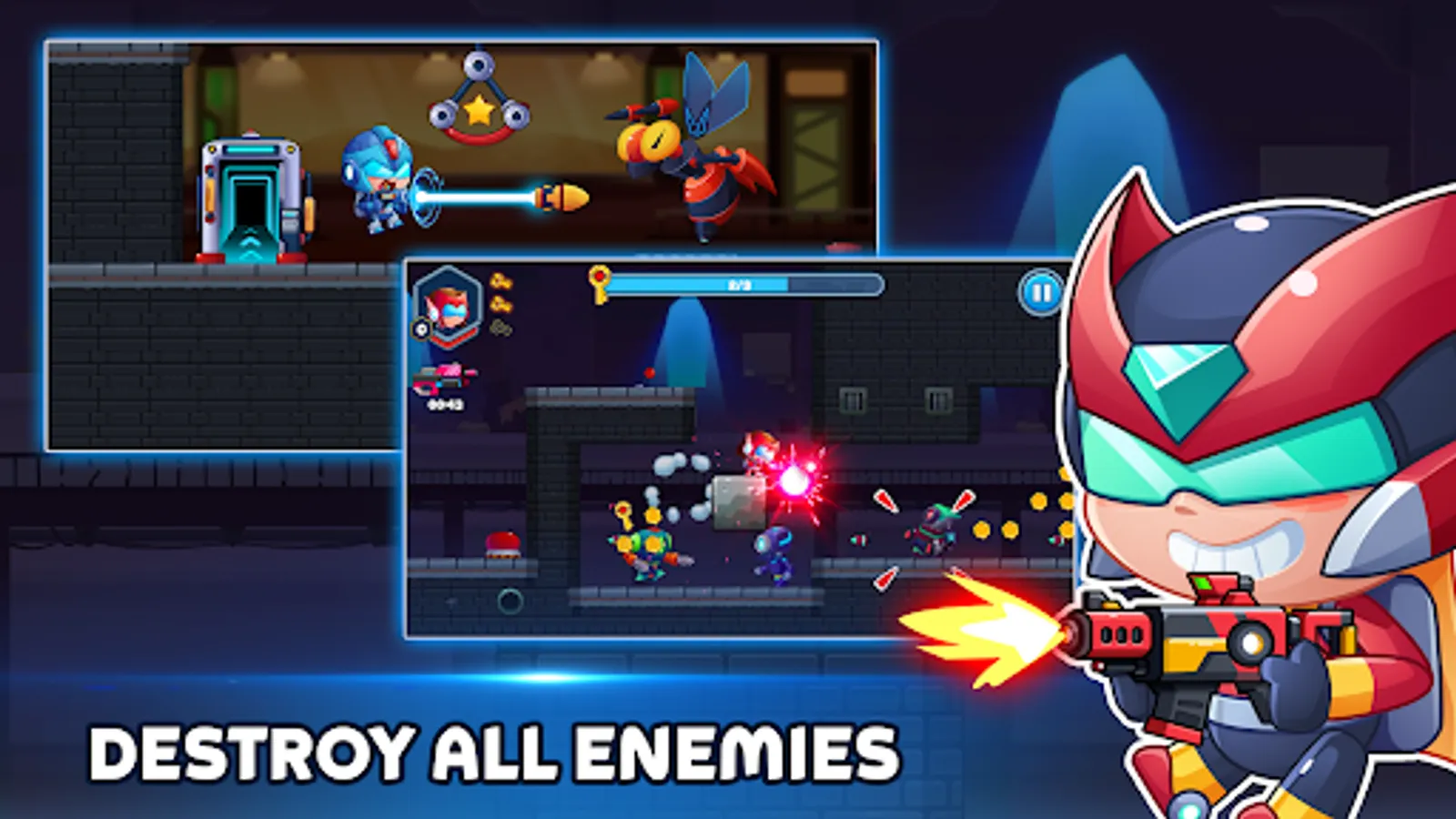 If you are fans of the 2D platformer, slide and jump genre will appreciate the classic mechanics and balanced physics of Metal Gun - Cyber Soldier, in the universe world, with your shooting style, mega objects movement, traversal on moving platforms, the man in jungle adventure, hidden tunnels, searches for secrets, rock star collection, and an endless jumping man quest in the name of love.