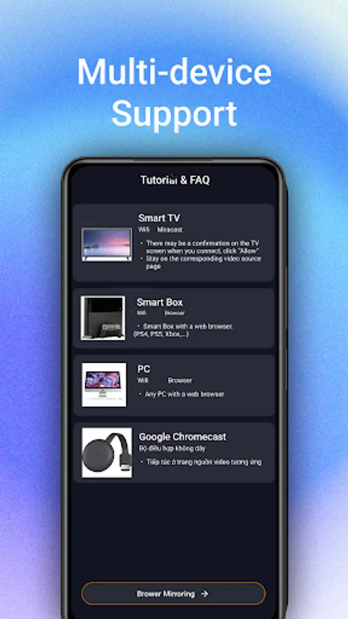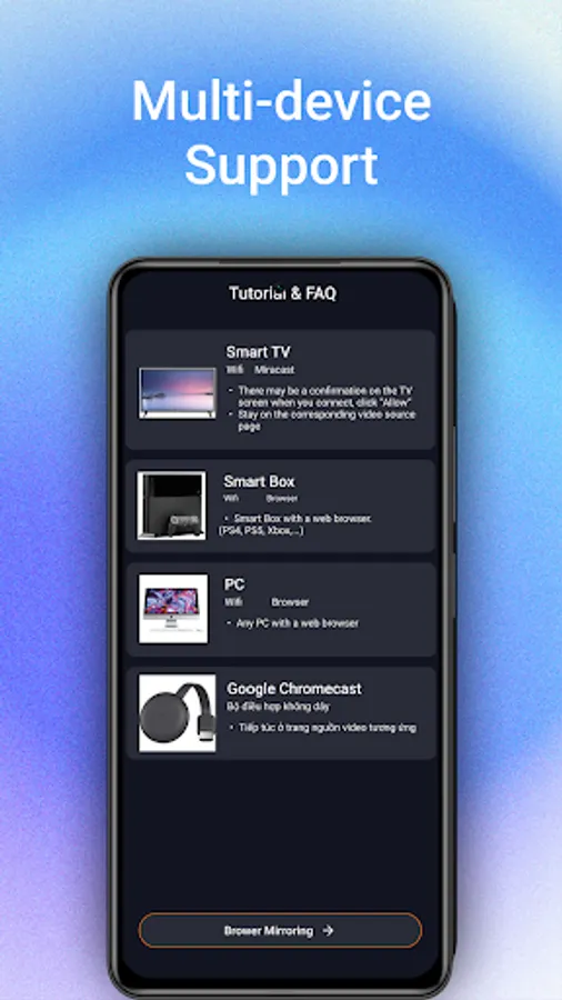 Screen Mirroring: HD Miracast is a new and innovative app - Cast Phone to TV, This feature allows you to mirror your smartphone's screen on your smart TV in high quality and real-time speed. On big TV screen, you can simply access all types of media files, mobile games, photos, music, videos, job presentations, and other applications.