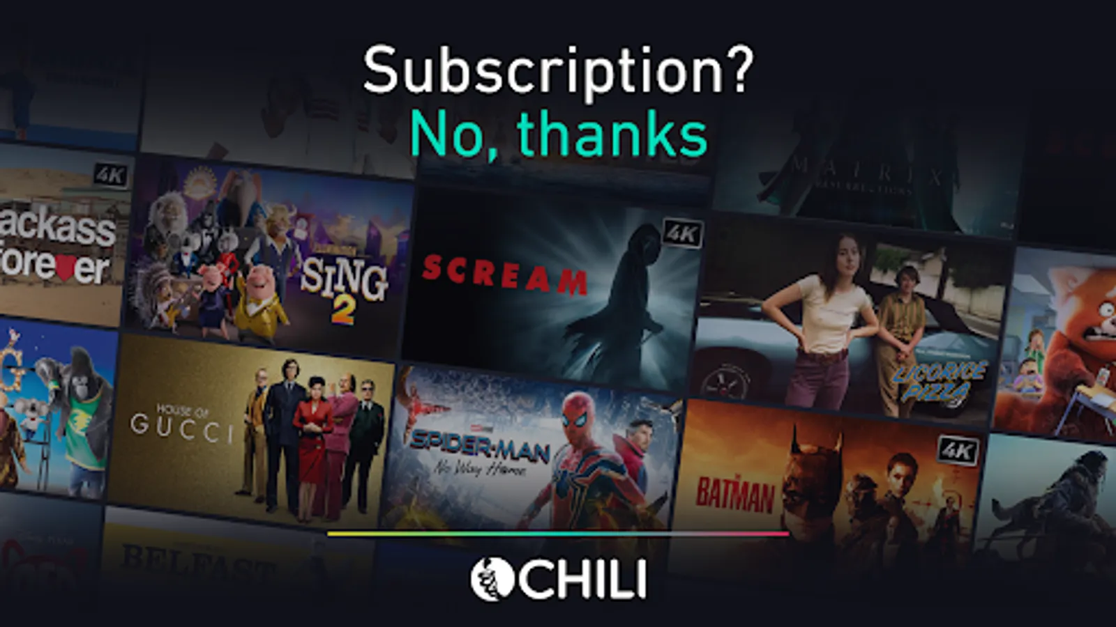 With CHILI you can choose from thousands of titles: from the latest cinema releases to the greatest cult classics, available to stream without subscription.