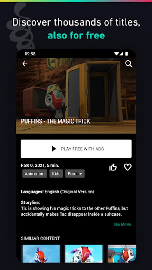 - Explore the catalogue by using the filters, search for the title you’re looking for or navigate through the app and be inspired by our editorial team’s suggestions.