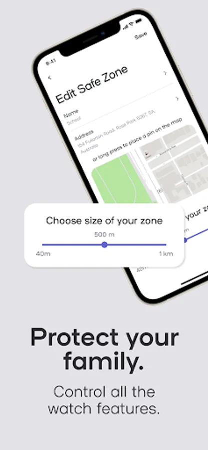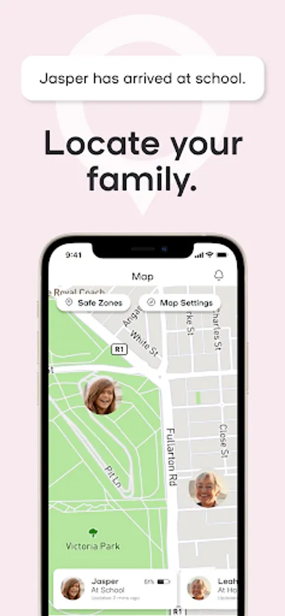 - Safe zones – parents can create safe zones around known locations and be notified when their child wanders from them.