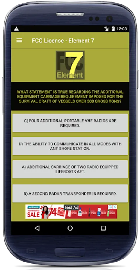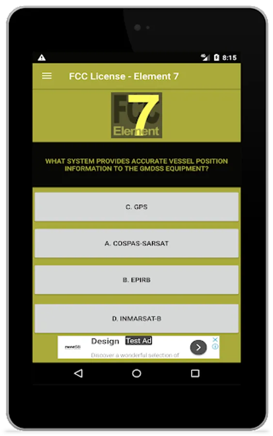 Element 7: GMDSS Radio Operating Practices. GMDSS radio operating procedures and practices sufficient to show detailed practical knowledge of the operation of all GMDSS sub-systems and equipment. The exam consists of questions from the following categories: general information, narrow-band direct-printing, INMARSAT, NAVTEX, digital selective calling, and survival craft. To pass, an examinee must correctly answer at least at least 75 out of 100 questions.