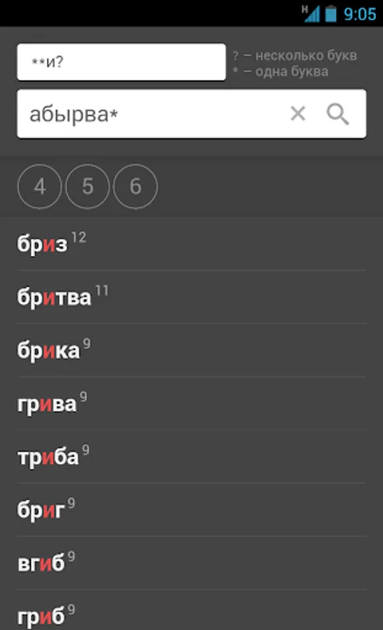 The application will help you when, playing in "Scrabble", "Scrub" or another word game, you are at a standstill and suitable words do not get into your head. Enter a set of your letters and a search mask - the application will find the words you need, and you select the one that will bring you more points. Along the way, find out what the words you have not met before mean.