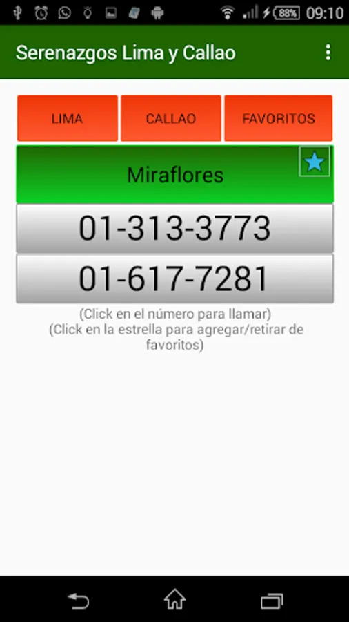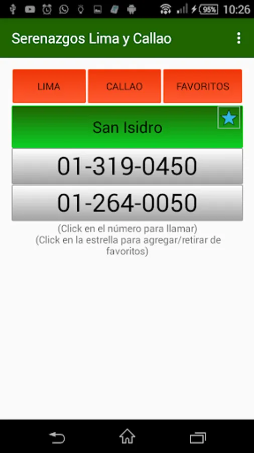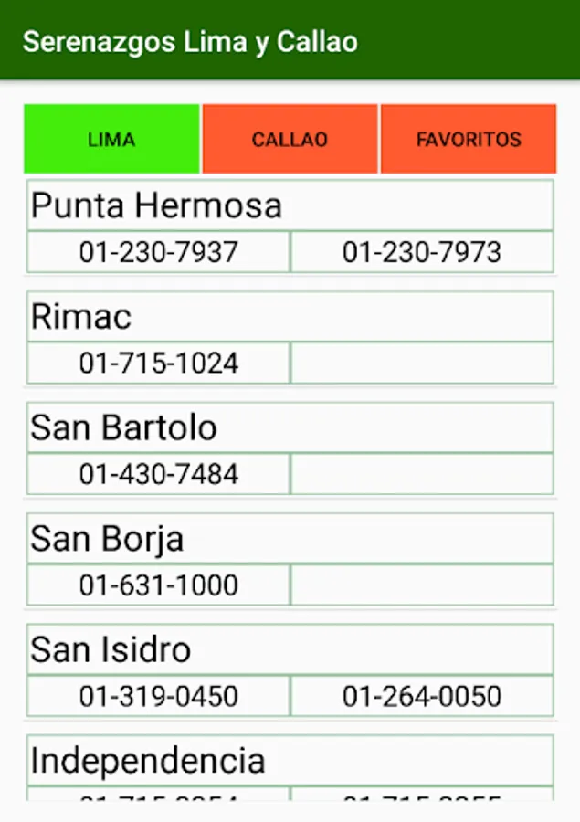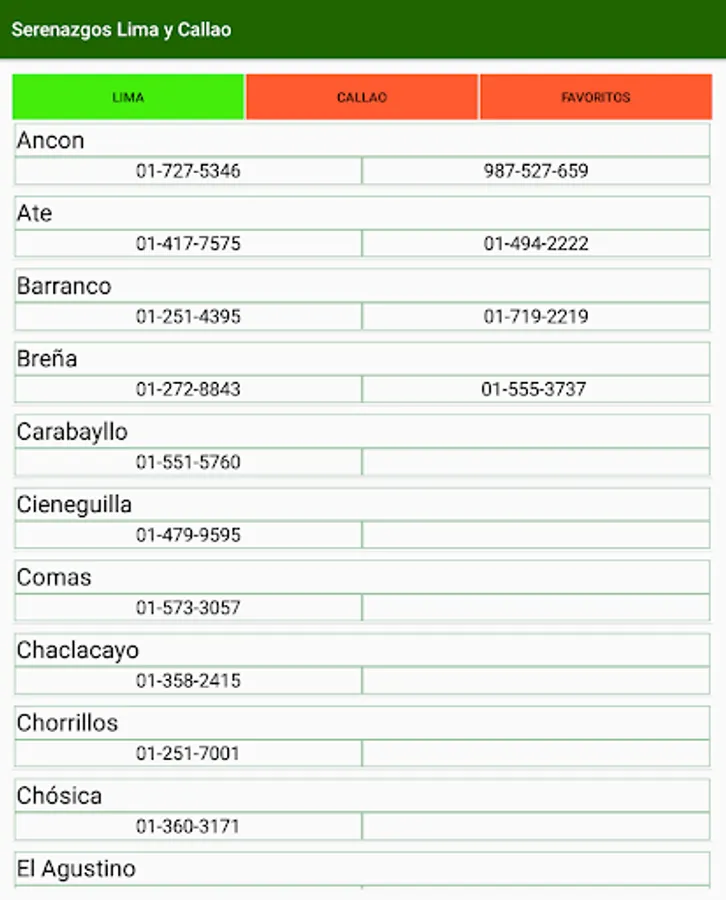 - Telephone numbers of serenazgos of all districts of Lima and Callao.