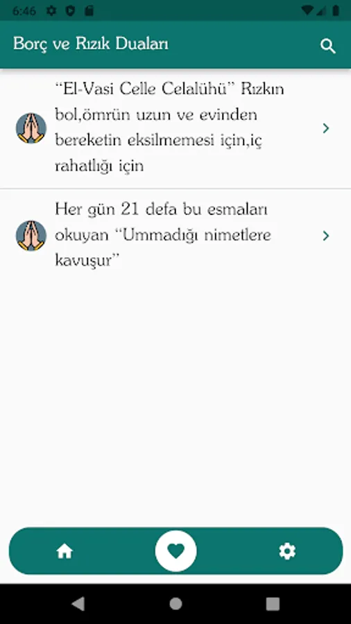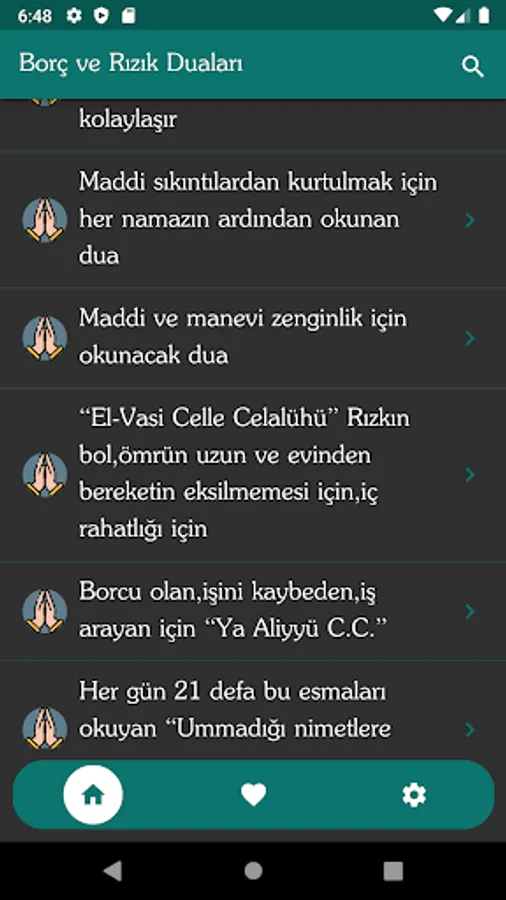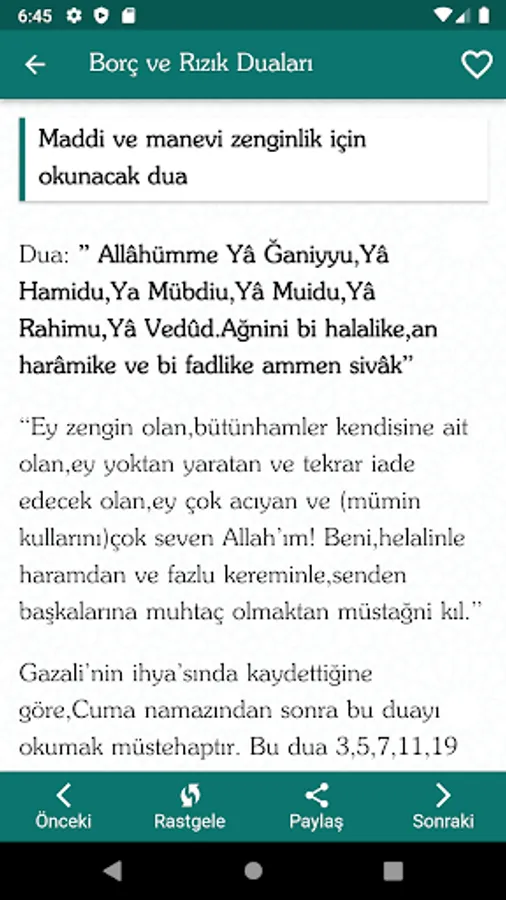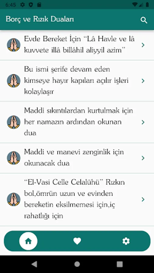You can view the debt and sustenance prayers you like by adding them to your favorites.