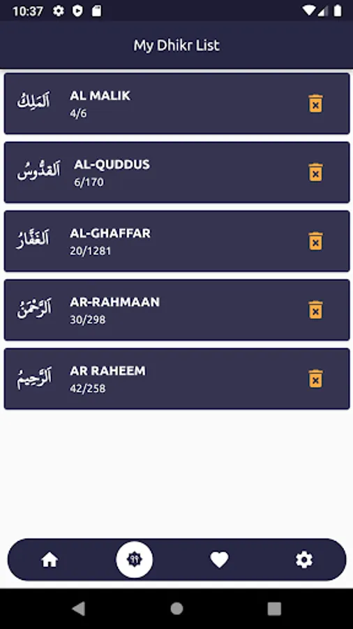 It is now very easy to make dhikr for the names of Allah with the esmaul husna dhikrmatik, which is included in the application of Esmaul husna and its meanings. In practice, esmaul husna dhikr numbers are included, and if desired, esmaul husna tasbihat can be made by changing the number of dhikr. You can reach the incomplete dhikrs from your dhikr list and continue later. It has vibration and audible warning features and can be turned off if desired in the Settings section. You can also easily recite the dhikr of Esmaul Husna by adjusting the font size.