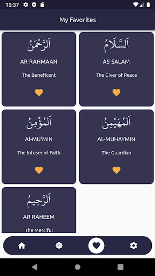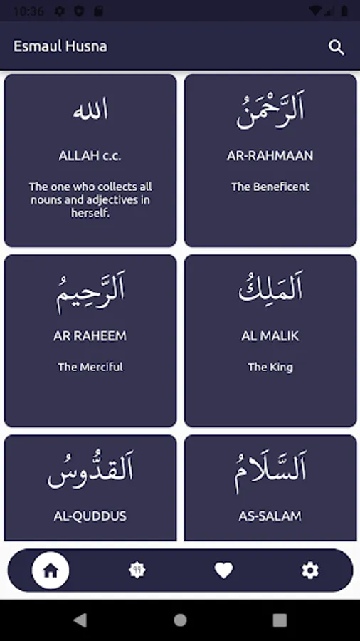 With the Esmaul husna application, you can view the Arabic pronunciation, meaning and explanation of the 99 names of Allah. Esmaul Husna can be listened to with voice download feature. Esma-ul husna, which you want to read later, can be added to favorites and displayed in the favorite list.