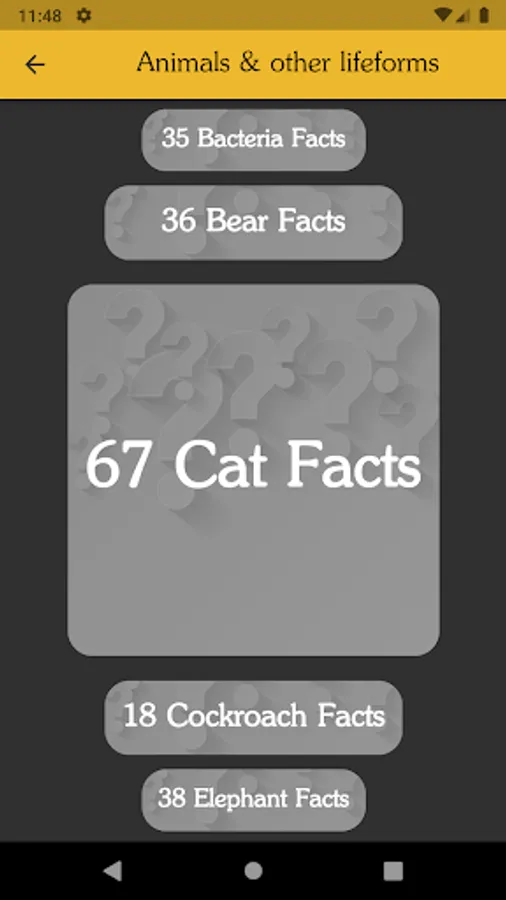 In the interesting facts app you can read facts from over 170 different categories like people, animals, history, countries, books, music, technology, money etc.