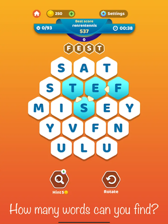 ★ Compared to 16 letters word games, the 19 hexagonal letters allows you to find the hidden words easier.