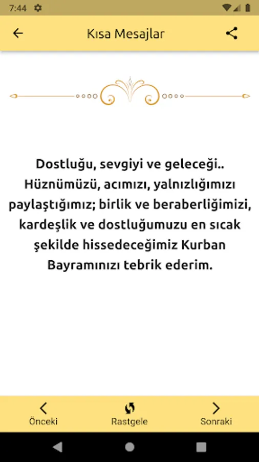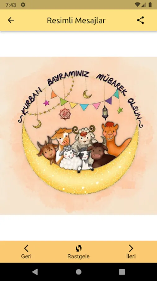 2023 Kurban Bayramı mesajları uygulamamız yayında. En güzel internetsiz kurban bayramı mesajları artık elinizin altında. En güzel bayram mesajları resimli ve en güzel yazılı bayram mesajları seçenekleri sizlerle. En güzel kurban bayramı mesajları resimli, en güzel kurban bayramı mesajları yazılı sevdiklerinize mesaj ile ya da Facebook, Twitter, Whatsapp gibi sosyal medya paylaşım programları üzerinden gönderin. Ücretsiz olarak bayram mesajı uygulamamızın tadını çıkarabilirsiniz. En yeni Resimli Kurban Bayramı mesajları uygulamamızda. En özel içerikleri ile kurban bayram mesajları.