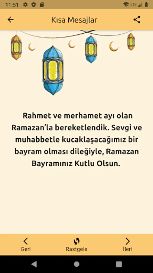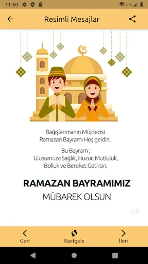 2022 yılı Ramazan Bayramı mesajları uygulamamız yayında. En özel mesajlar artık elinizin altında. En güzel bayram mesajları resimli ve en güzel yazılı bayram mesajları seçenekleri sizlerle. Beğendiğiniz Ramazan Bayramı mesajlarını sevdiklerinize mesaj ile ya da Facebook, Twitter, Whatsapp gibi sosyal medya paylaşım programları üzerinden gönderin. Ücretsiz olarak bayram mesajı uygulamamızın tadını çıkarabilirsiniz.