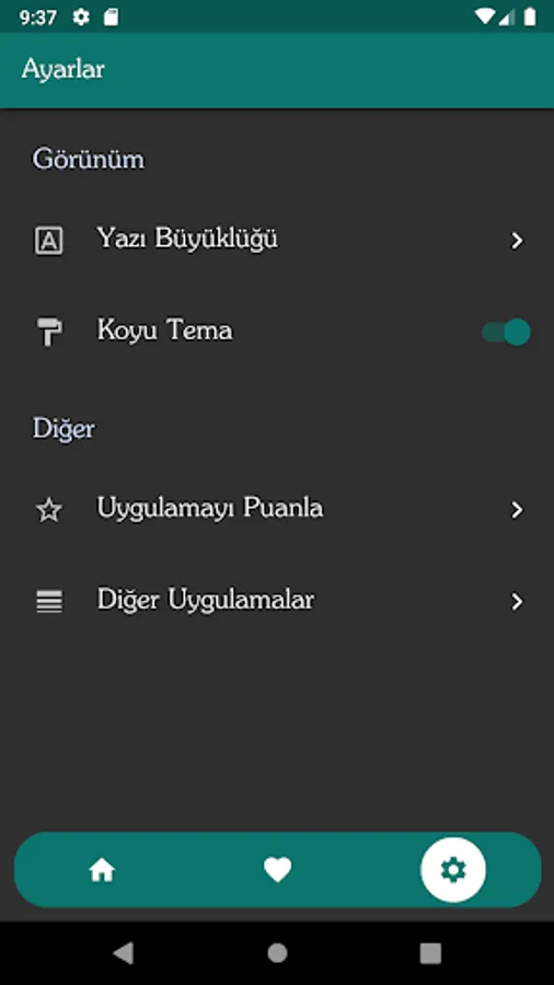 Ayarlar sayfasından sevgi dualarının yazı boyutunu değiştirebilirsiniz.