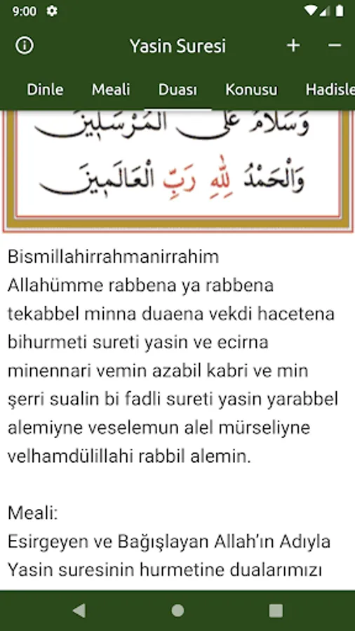 Surah Yasin is free and after downloading Yasin-i Sharif, you can use it without the need for internet. Yasini Şerif has Turkish pronunciation.