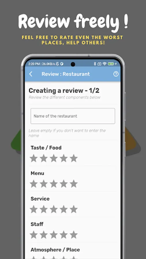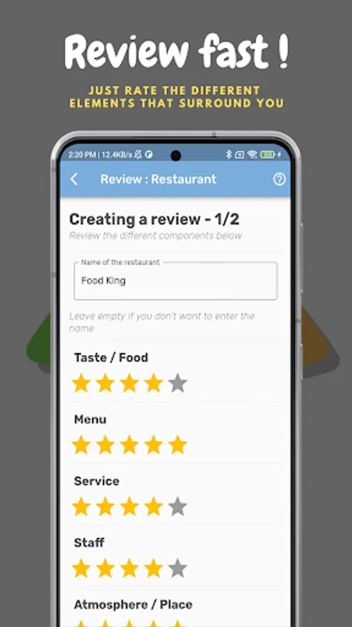 Choose a type of establishment, quickly fill in your impressions thanks to a star rating system, enter the name of the establishment, and that's it! All you have to do is enter your review on the explorer of your choice!