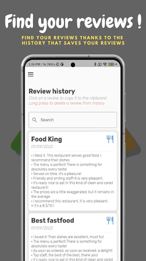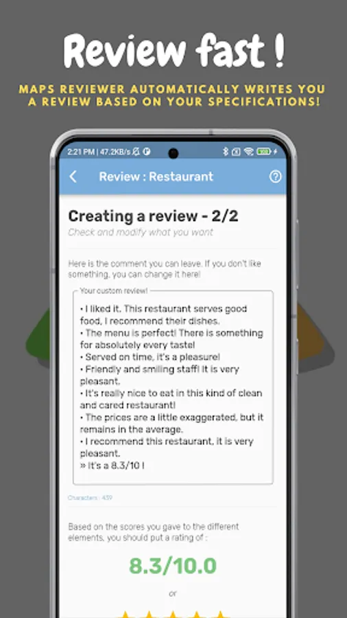 Write honest, simple but complete reviews with the Maps Reviewer app!