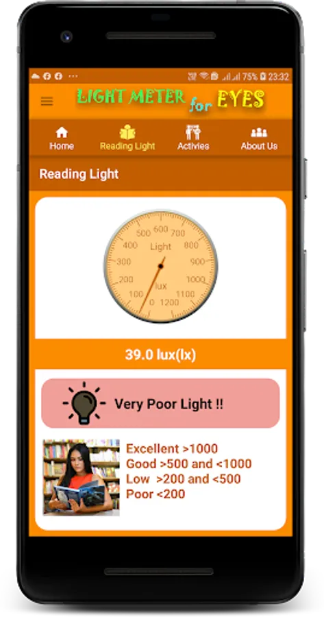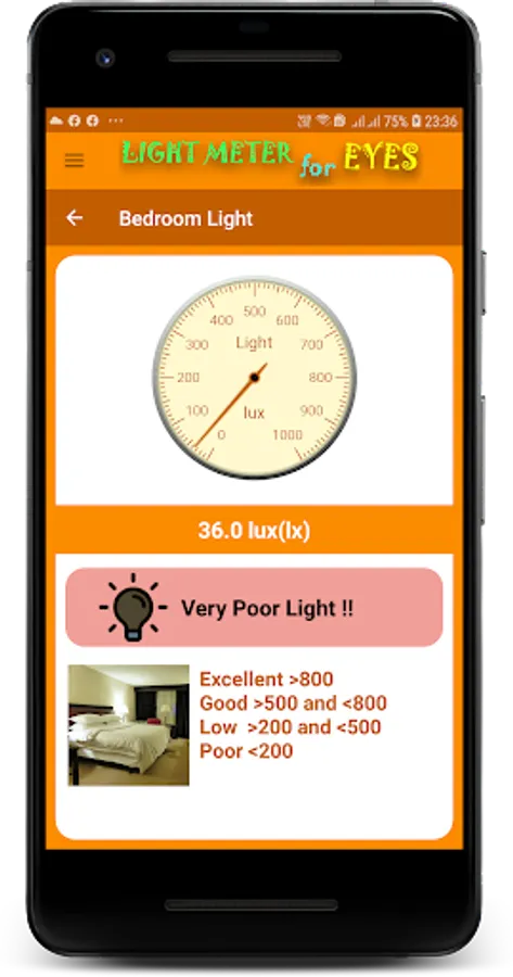 This app uses the built-in ambient light sensor in devices to measure the visible light available. Please make sure your device has built-in ambient light sensor before you use this application.