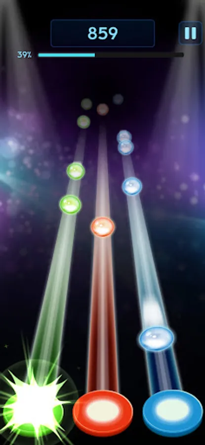 - Tap the discs when passing the bar at the bottom to score points for accuracy and timing