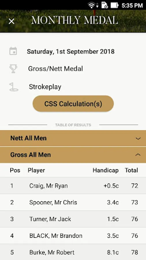 • Secure contact and current handicap details of other OSI Golf Club members.