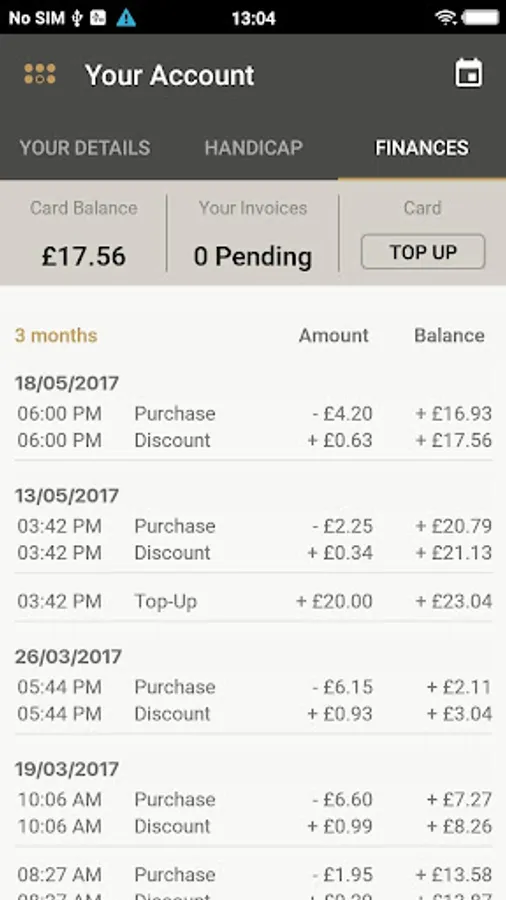 • Details of personal card balance and history of invoices & transactions.
