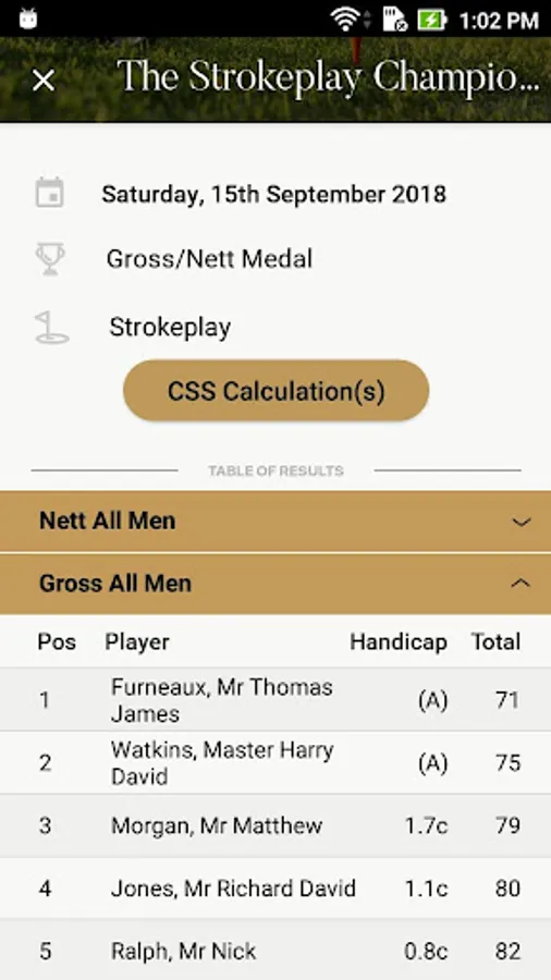 • Current Handicap, Handicap history and current CONGU handicap certificate.