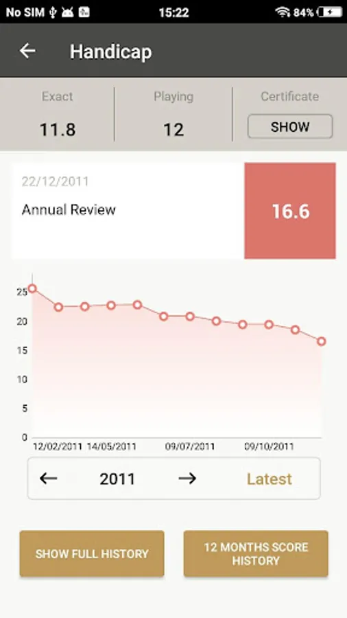 • Current Handicap, Handicap history and current CONGU handicap certificate.