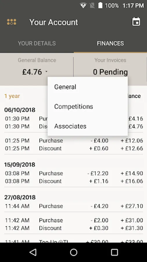 • Details of personal card balance and history of invoices & transactions.