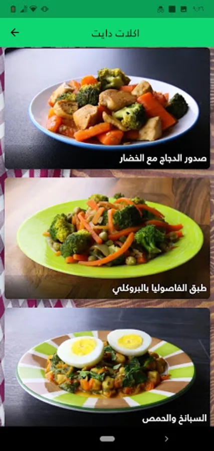 - The application contains: Diet for lunch, Diet meals for dinner, saturated diet foods, in addition to healthy diet foods