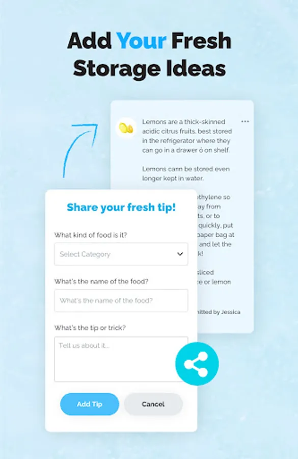 You can search the tips and tricks database for helpful advice on how to store your food properly, and users can submit their own tips too!