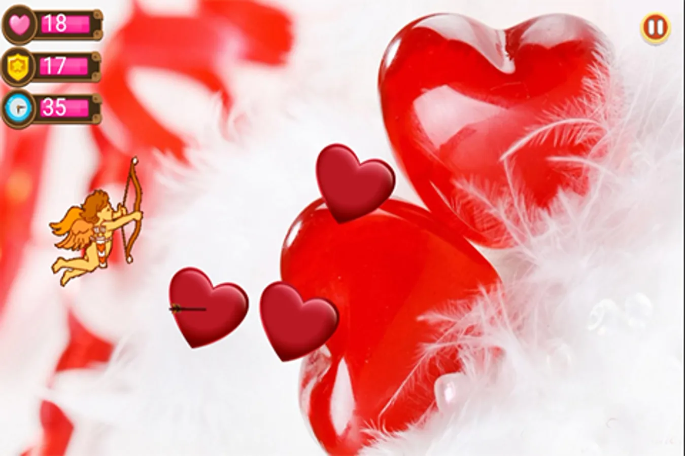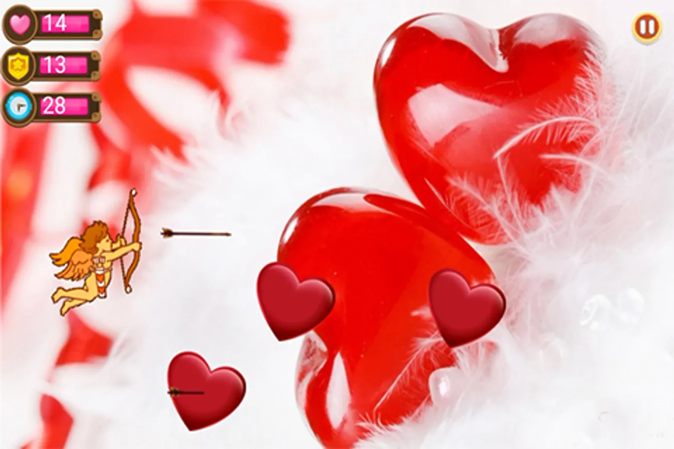 In this game you become a cupid, whose job is to shoot as many hearts as possible flying from the earth.