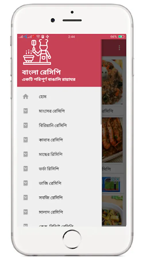 মাংসের, বিরিয়ানি,কাবাব, কেক,মাছের,ভর্তা,ভাজি,সবজি,আচার,বিস্কিট,ষ্টি,পিঠা,পুডিং,ফালুদা,জর্দা,ইফতার,বৈশাখী,বিয়ে বাড়ি মজার মজার রেসিপি রয়েছে। আপনি খুব সহজেই এই অ্যাপস এর মাধ্যমে রান্না করতে ও শিখতে পারবেন।